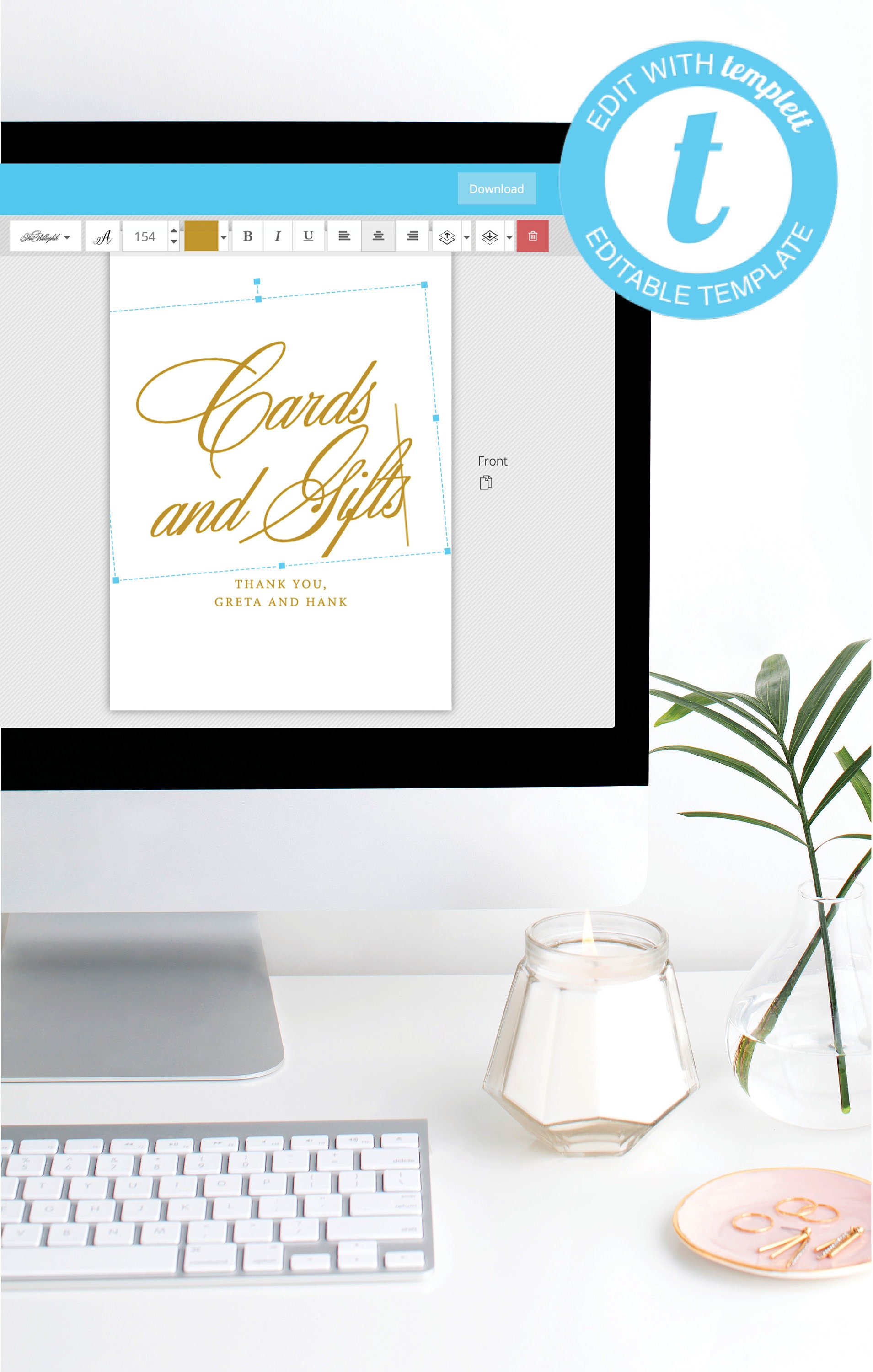 Print a cards and gifts sign for your wedding or event. Our free printable sign is customizable with our free customizer. Click on the editable text you . Modern cards and gifts sign template, cards and gifts table . With these templates, you can easily customize and personalize your invitation to ma.